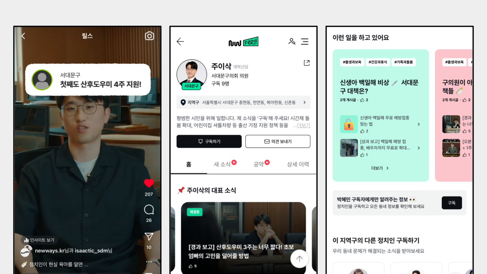 오프라인 중심의 지역구 정치에서 만나기 어려웠던 유권자와 정치인을 온라인으로 연결하고 정치에 영향을 미칠 수 있는 참여 경험을 제공해