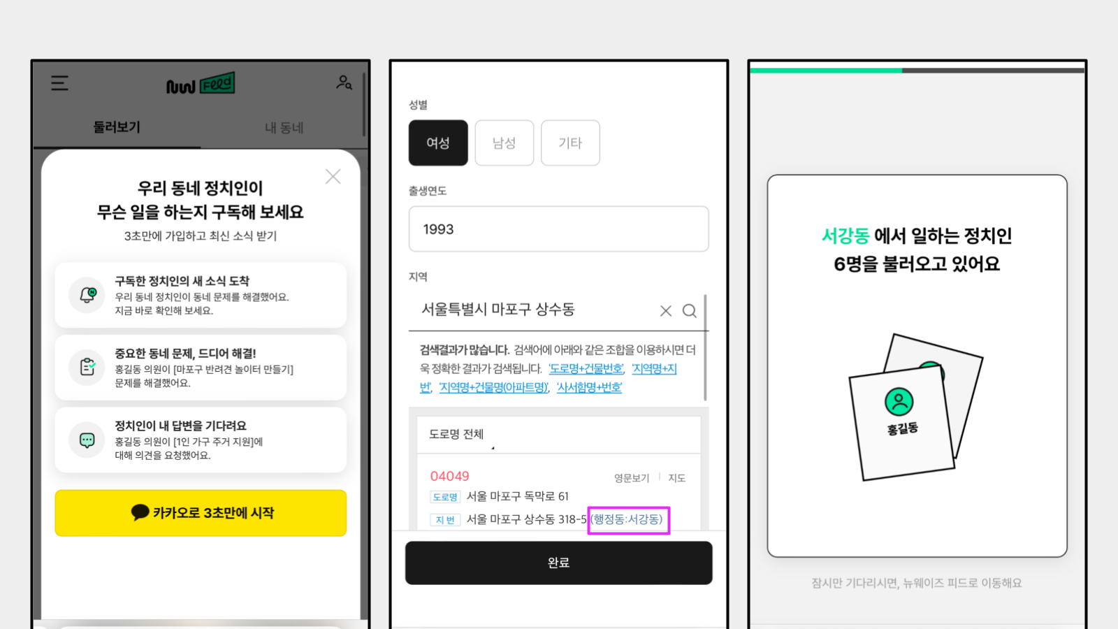 출마한 젊치인들이 하루종일 밖에 서있어도 2030 유권자는 만나기 어렵다고 합니다. 낮에는 동네 밖으로 일하고 공부하러 나가니까요. SNS로도 페이스북은 당원 중심, 인스타그램은 지역 타겟이 안되고 지역 커뮤니티는 정치 이야기가 금지라서 대안이 없다고 합니다. 기술을 통해 온라인에서 만나기 어려웠던 다양한 유권자와 지역구 정치인을 연결해보기로 했습니다.