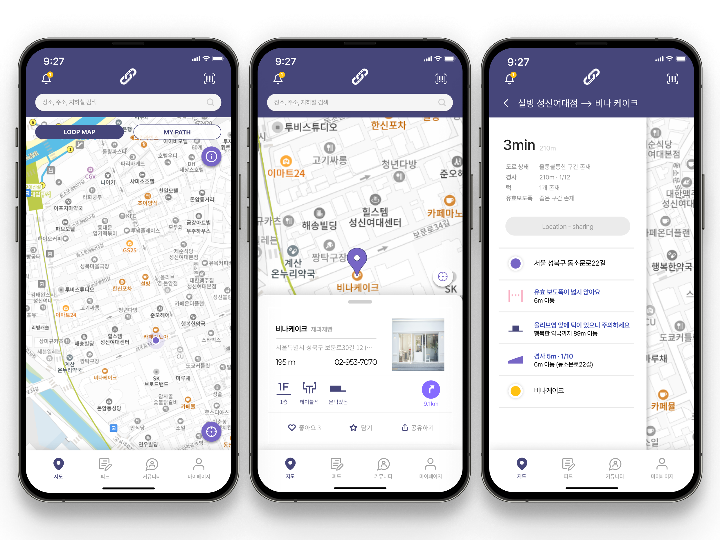 클라우드 기반 UI 디자인 툴인 피그마로 휠체어 사용자를 위한 지도 형태의 기록형 커뮤니티 어플 LOOP의 프로토타입을 제작