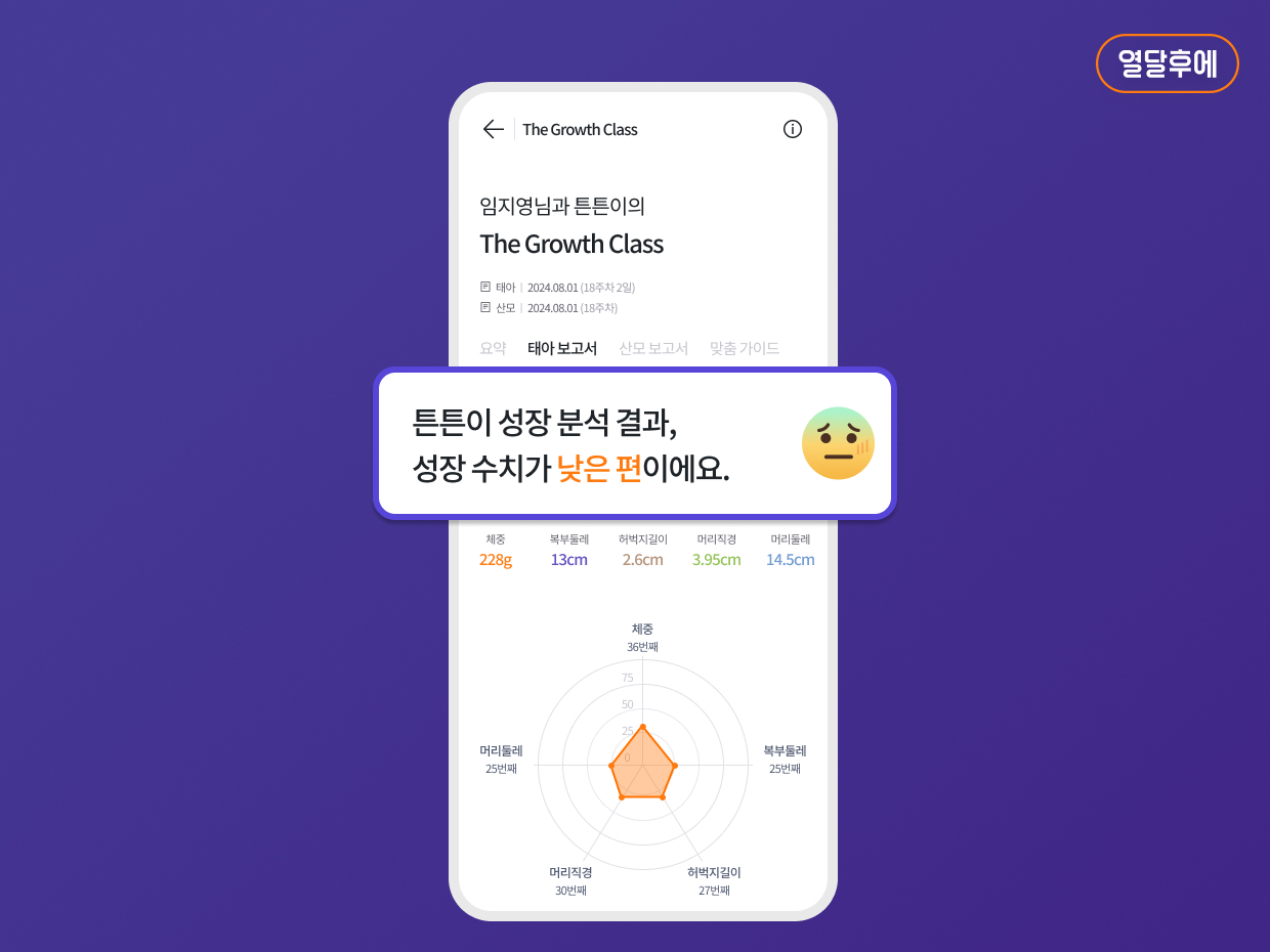 본 프로덕트는 임신출산육아 통합 모바일 플랫폼인 ‘열달후에’에 올해 2월 새롭게 추가된 서비스로. 서비스명은 ‘Growth class’입니다.(Growth는 태아의 성장을 의미)