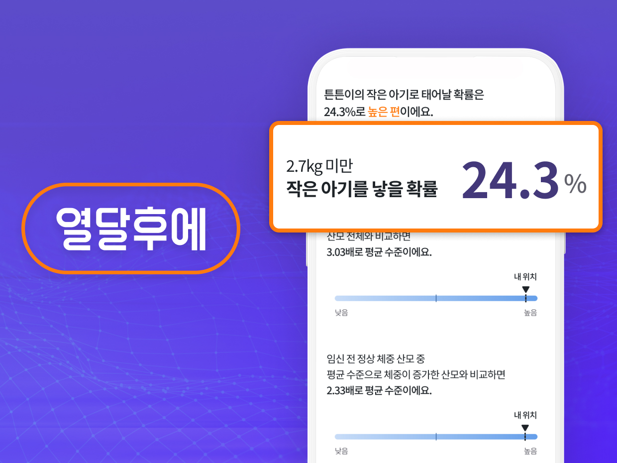 저희가 임신 25주 이전 작은아기 출생 위험도가 높다고 예측한 태아의 실제 작은아기 출생률은 전체 평균보다 1.5배 높아 알고리즘 정확도가 공인평가기관에 의해 입증되었습니다.