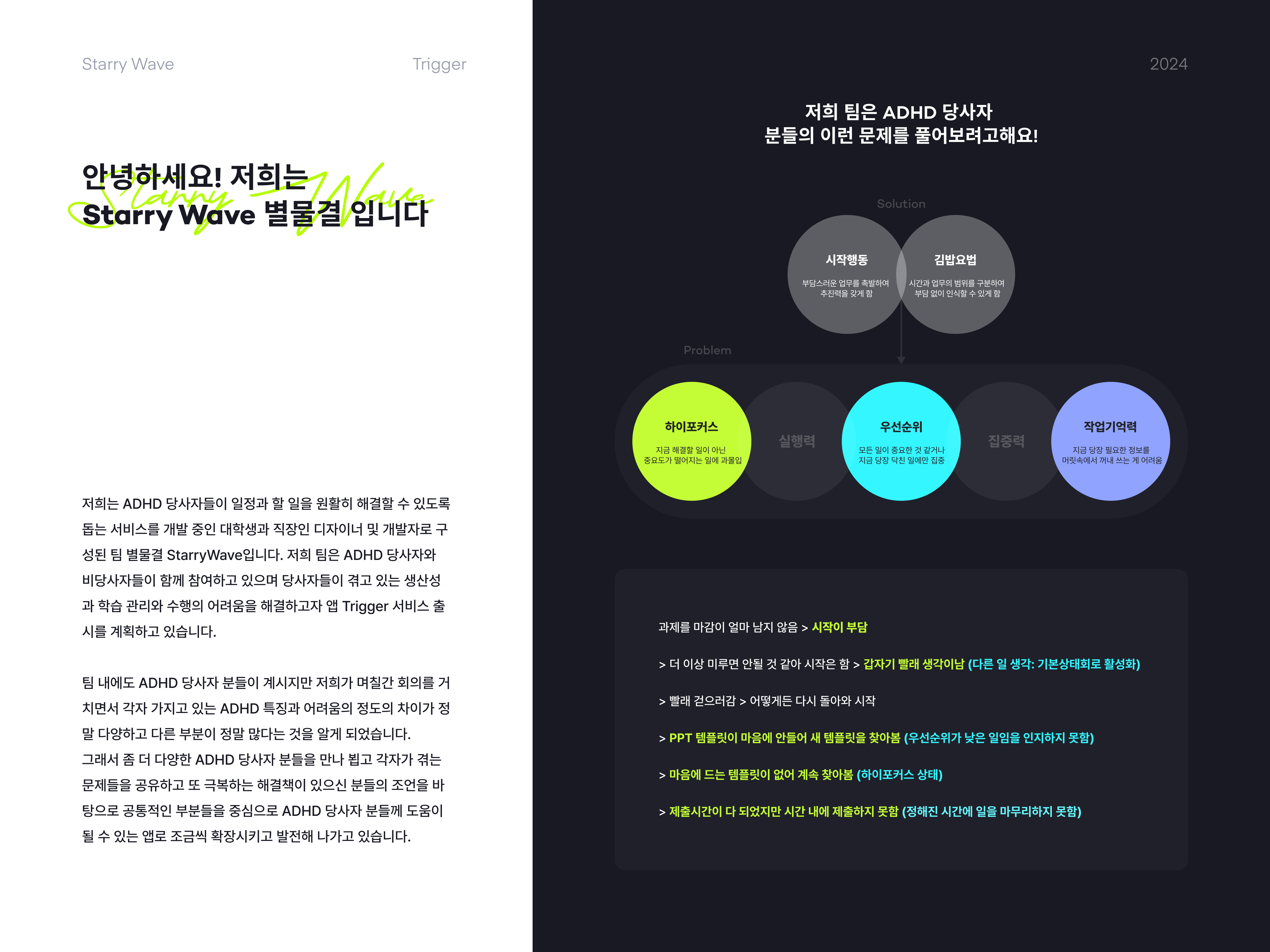 - 해결하고자 하는 문제ADHD 환자가 증가하고 있으며, 이들은 할 일을 제대로 처리하지 못해 일상생활을 영위하기 힘든 문제를 겪고 있다.